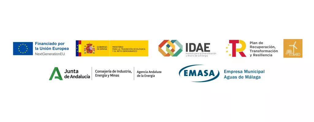 EMASA ha recibido una ayuda de la Unión Europea con cargo al Fondo NextGenerationEU, en el marco del Plan de Recuperación, transformación y Resiliencia, para la Instalación Fotovoltaica autoconsumo (100 kWp < P <= 1.000 kWp) en la ETAP Atabal (FASE II), dentro del programa de incentivos ligados al autoconsumo y almacenamiento, con fuentes de energía renovable, así como la implantación de sistemas térmicos renovables en el sector residencial del Ministerio para la Transición Ecológica y el Reto Demográfico, gestionado por la Junta de Andalucía, a través de la Agencia Andaluza de la Energía.